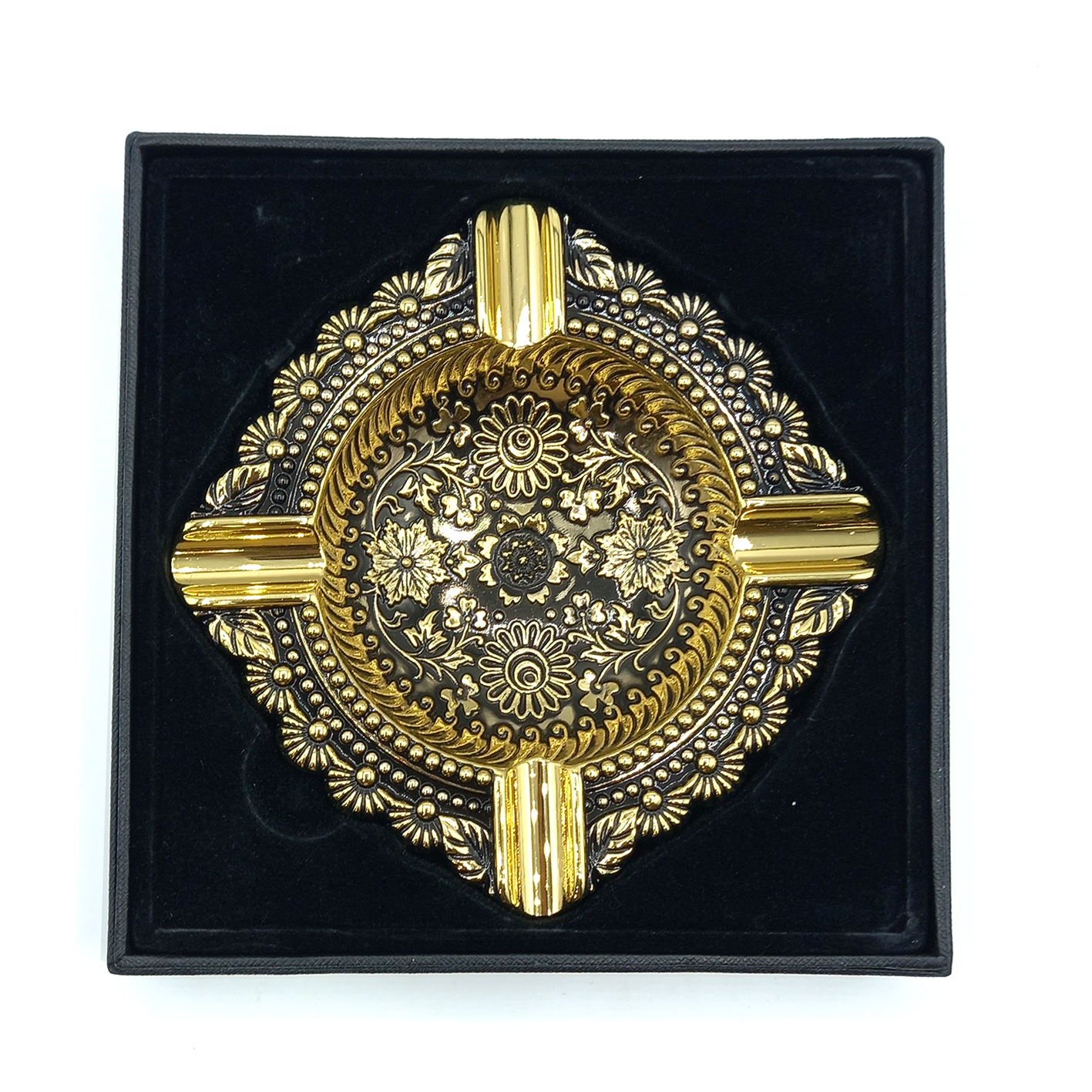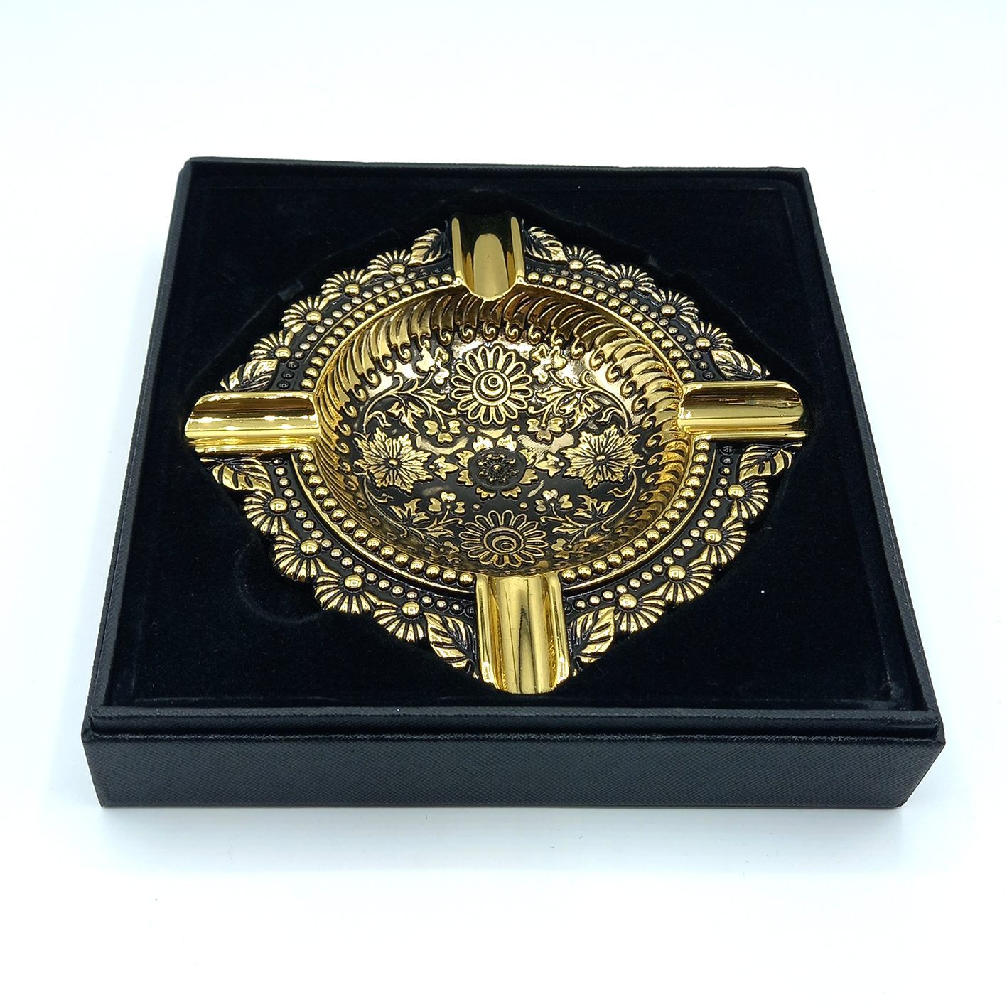 زیرسیگاری زورو کد 02 به رنگ مشکی تولید شده اما نقش و نگار های آن با آبکاری طلایی تزئین شده اند. رنگ کار کاملا ثابت است و ماندگاری بسیار بالایی دارد. زیرسیگاری های برند زورو همگی در یک کیس شکیل به بازار عرضه میشوند که لایه داخلی آن از جنس مخمل ساخته شده است. از همین رو اگر به دنبال هدیه ای شیک و زیبا هستید، زیرسیگاری زورو میتواند گزینه مناسبی باشد.