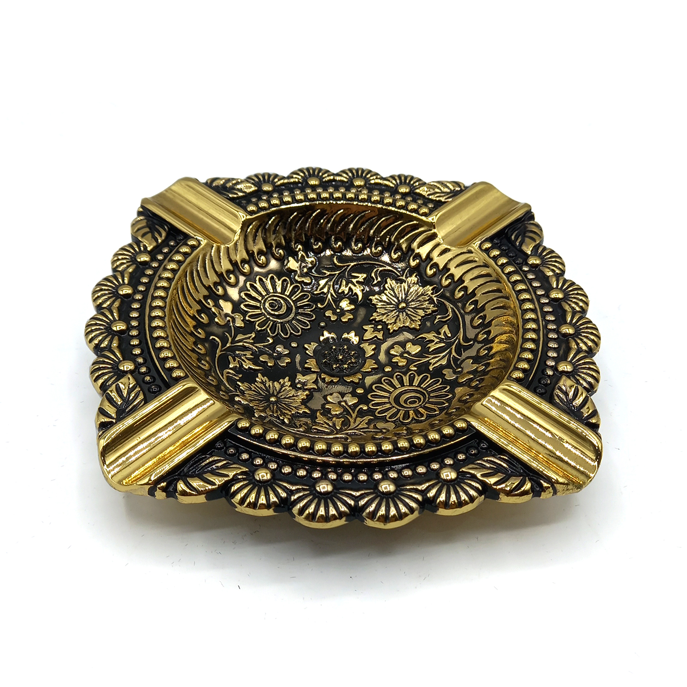 زیرسیگاری زورو از جنس فلز رنگ ثابت ساخته شده است. 4 جا برای قرار دادن سیگار دارد و به زیبایی توسط نقوش کنده کاری شده تزیین شده است. فرم اصلی زیرسیگاری زورو گرد است اما لبه های آن توسط دستگاه پرس به شکل دالبر درآمده که ظاهر این اکسسوری را منحصر به فرد کرده است.
