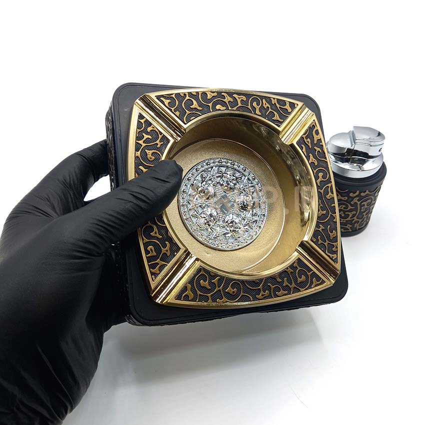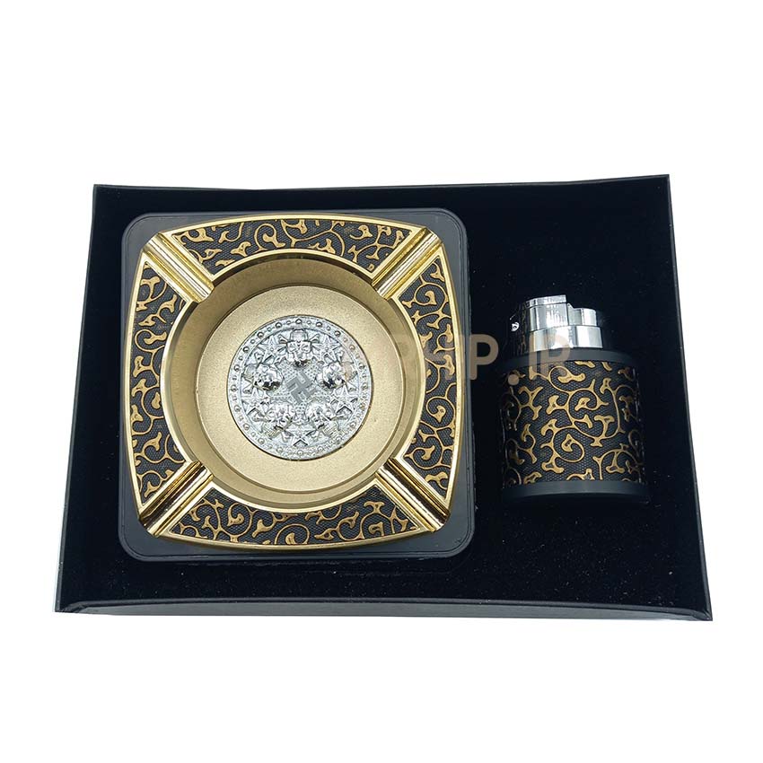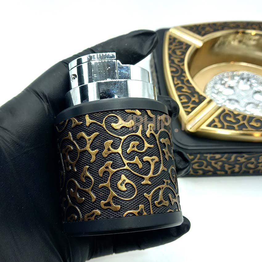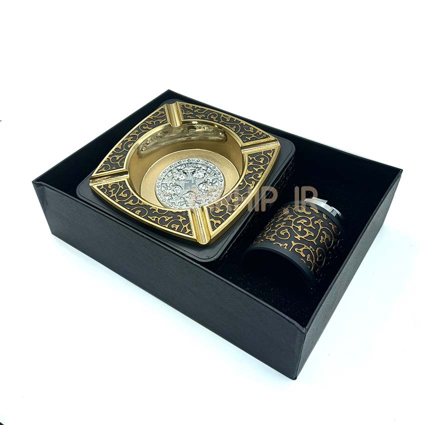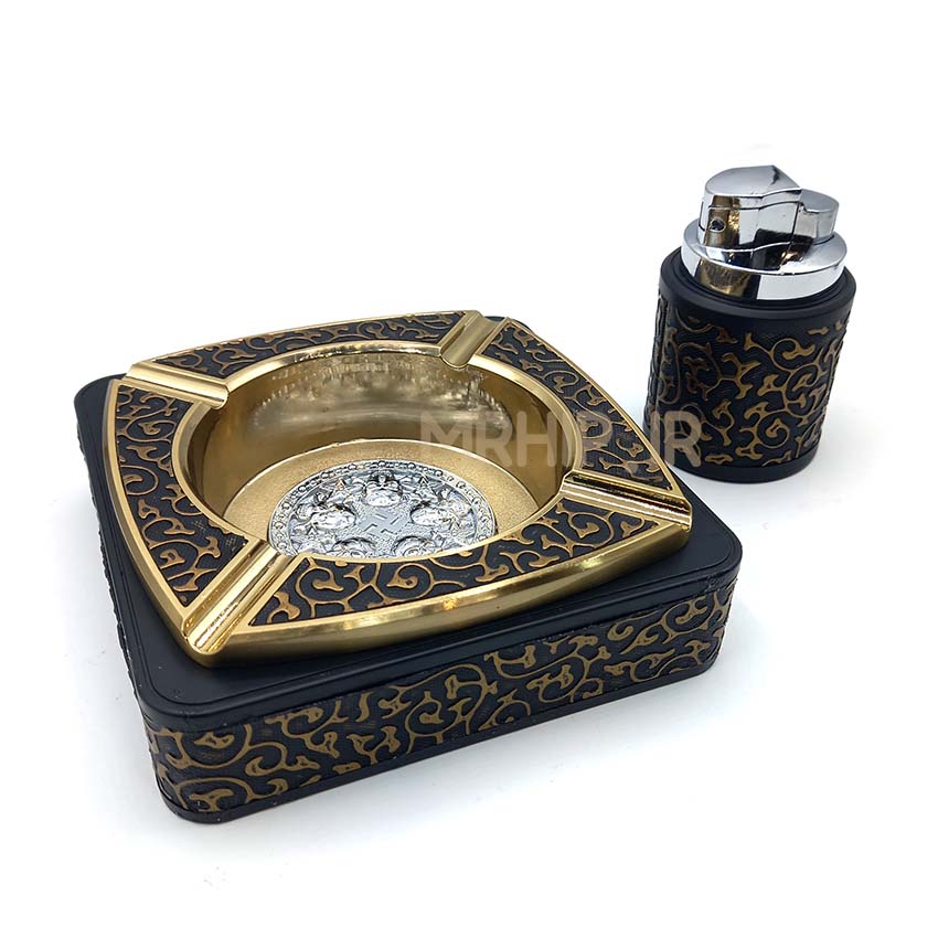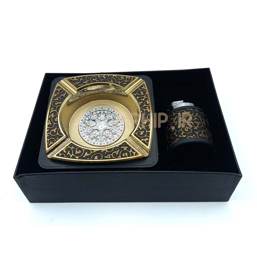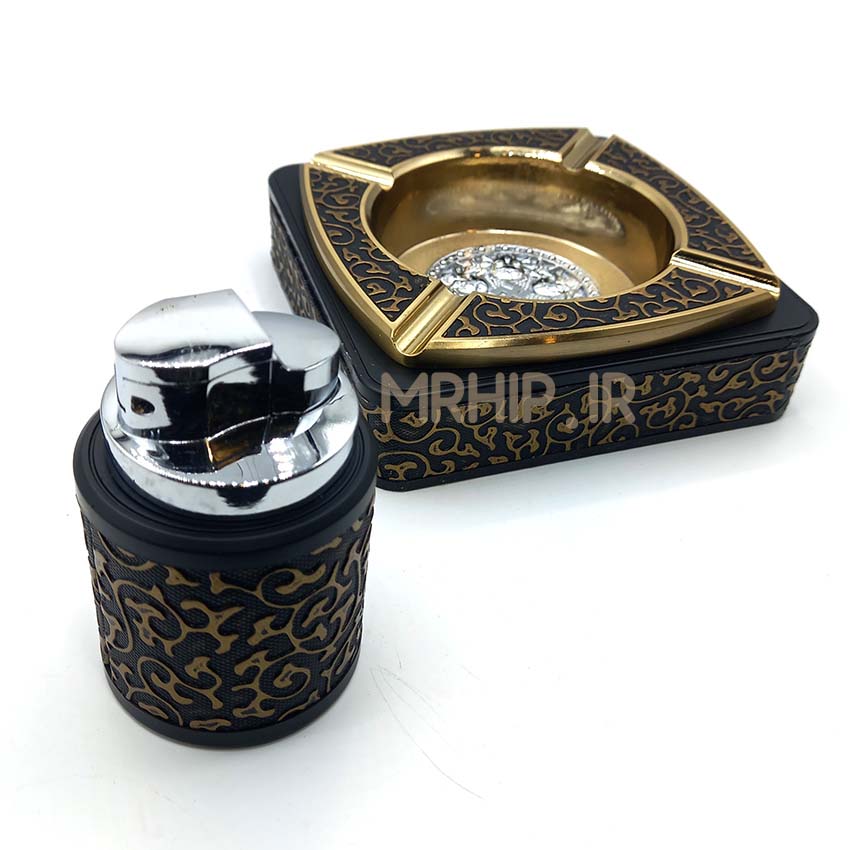 ست فندک اتمی و زیرسیگاری مدل اسلیمی مشکی طلایی کد a220036