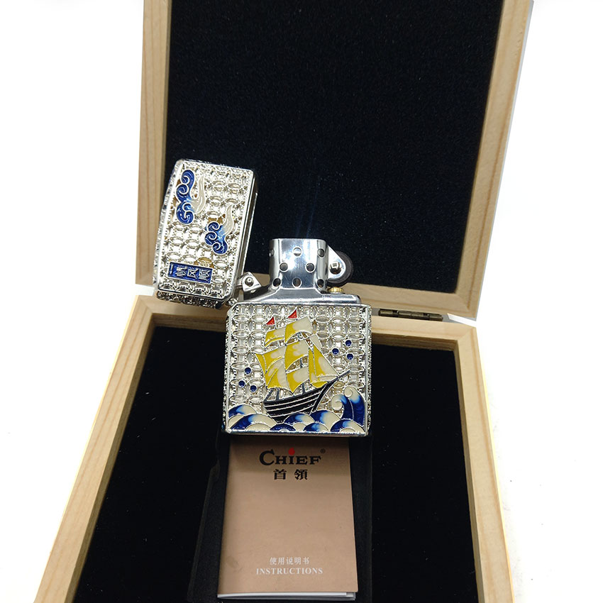 فندک بنزینی چیف نقره ای طرح کشتی کد L1301