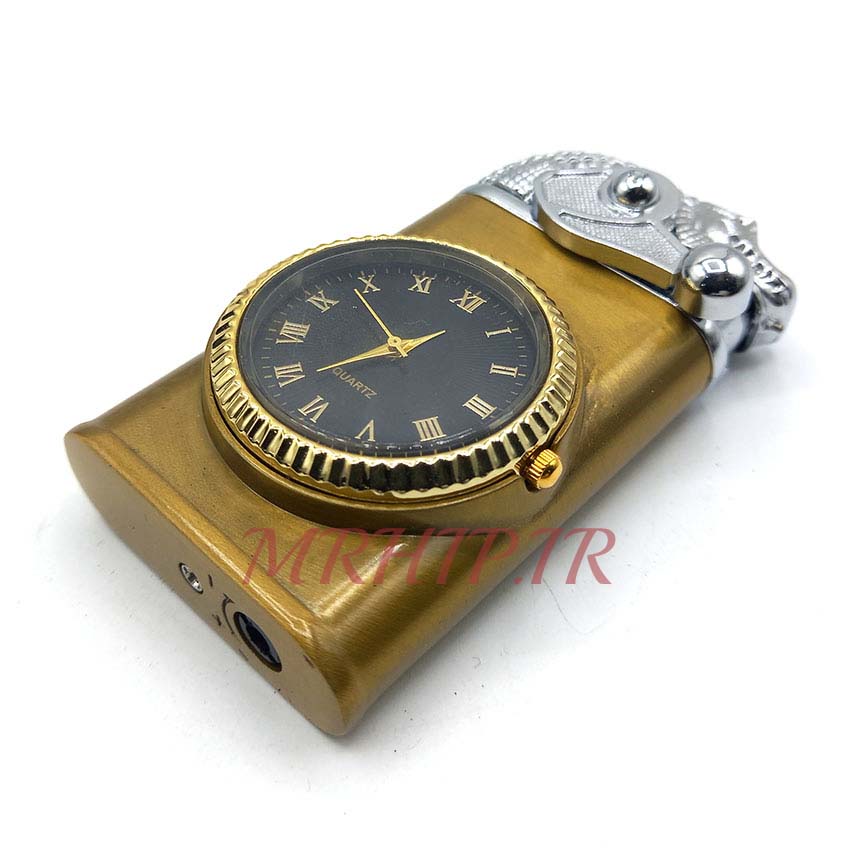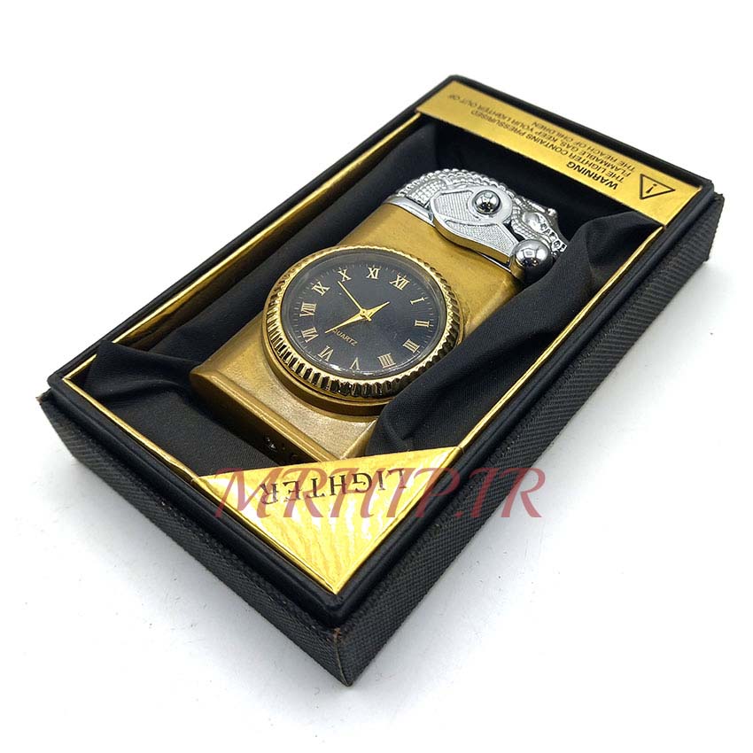 فندک گازی اتمی طرح ساعت رنگ طلایی کدa120298