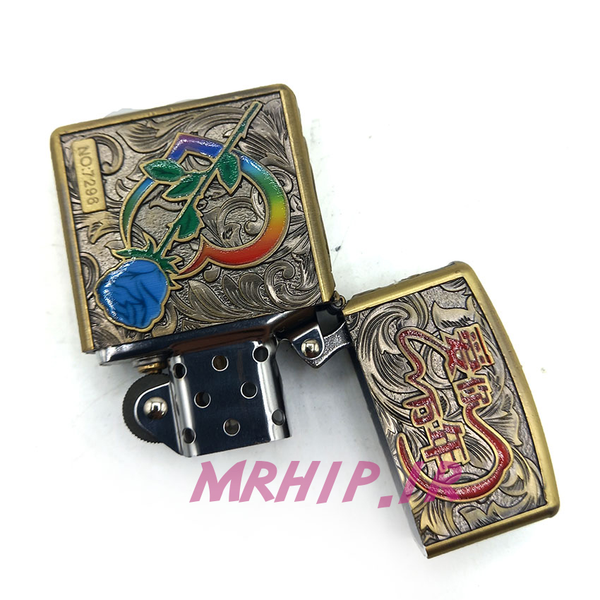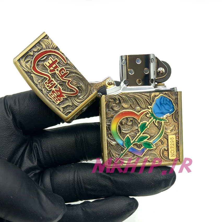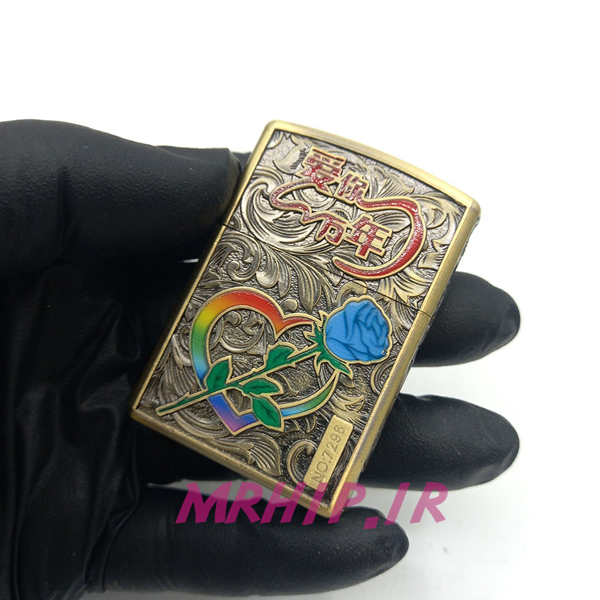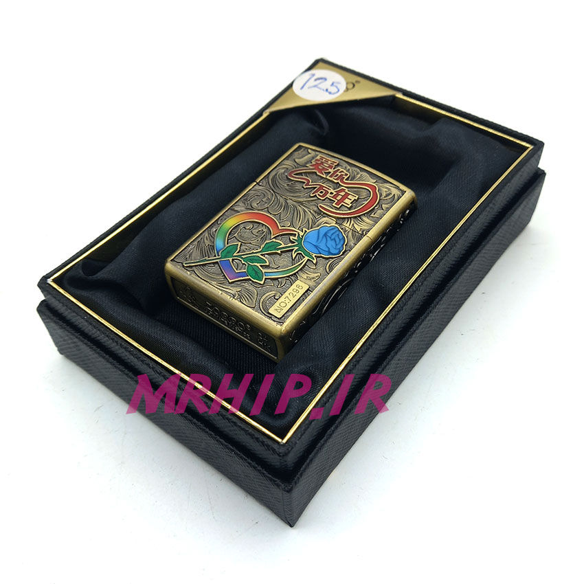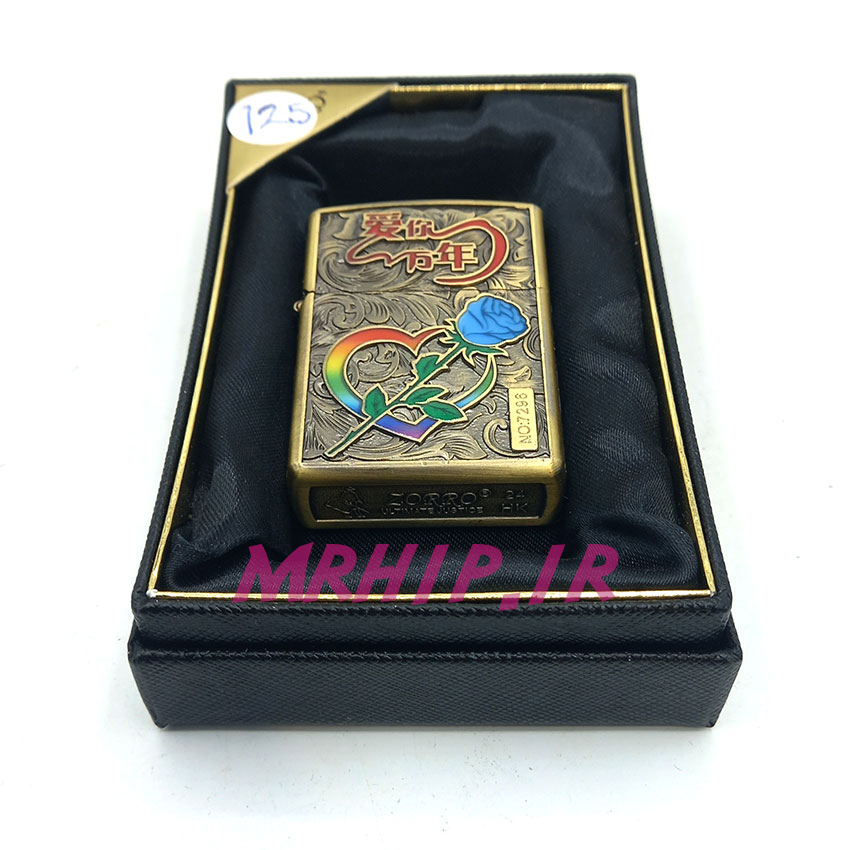 فندک بنزینی زورو طلایی برجسته قلب و گل رنگی کد A130096