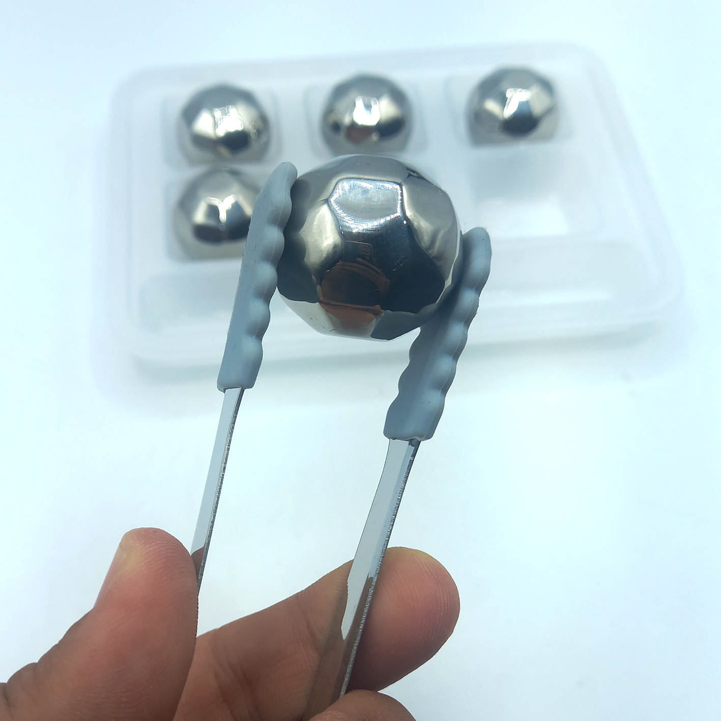 یخ فلزی کروی استیل مجموعه 6 عددی به همراه انبر کد a310004