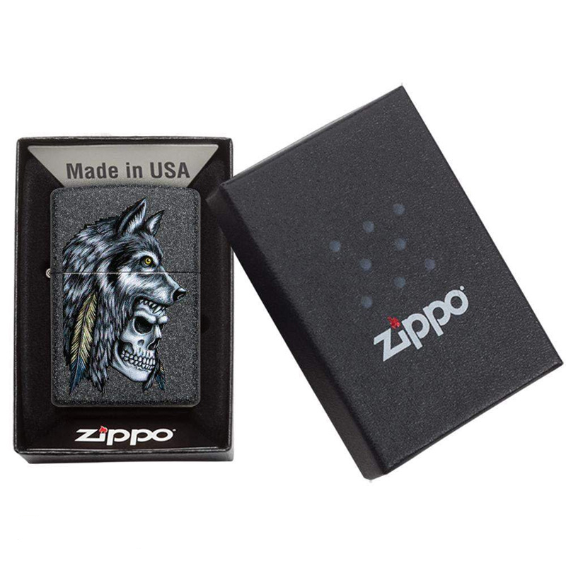 فندک زیپو Zippo Wolf Skull Feather Design کد 29863